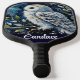 White Owl On Branch in Moonlight Personalised Pickleball Paddle
