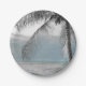 White Palm Coconut Tree Elegant Beach Wedding Paper Plate