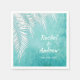 Palm fronds in white on an ocean turquoise blue watercolor background on these napkins - 2 SIZES available - CHANGE the wording, change the fonts, just click CUSTOMIZE button. See MATCHING invitations and more in our store ---> http://bit.ly/2UyWIVj <---