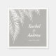 Silver background for palm fronds in white on these napkins - 2 sizes available - CHANGE the wording, change the fonts, change the background colour with our colour picker tool, just click CUSTOMIZE button. See MATCHING invitations and more in our store ---> http://bit.ly/2UyWIVj <---