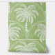 A symmetrical palm tree pattern featuring white etched-style palms set against a soft green background. The arch-like layout and subtle hand-drawn texture give the design a breezy, relaxed feel.