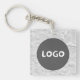 White Pattern Business Logo & QR Code Double-Sided Key Ring