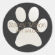 Elegant and modern gray and charcoal paw print logo product stickers. Easily customized for your pet related business.