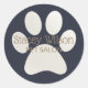 Elegant and modern gray and navy paw print logo product stickers. Easily customized for your pet related business.