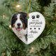 Heart-shaped pet memorial ornament to which you can two photos of your pet, one on each side. Add their name too and years living. You left paw prints on our hearts in a charming typography design in matte black on white with paw prints and hearts. Remember your beloved pet who's passed with a heart-shaped Christmas ornament personalised with a photo of your dog or cat.
