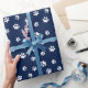 Show your love for animals with this cute white animal paw print design on a blue background.