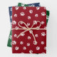 White Paw Prints Pattern on Red Green Blue Wrapping Paper Sheet