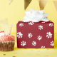 White Paw Prints Pattern on Red Wrapping Paper