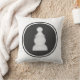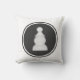 White Pawn Chess Piece Throw Pillow. A stylish chess piece symbol white pawn pillow, buy all chess pieces pillows: king, queen, rook, knight, bishop and pawn for full chess game! On the back a stylish black and white chess pieces pattern with king, queen, rook, knight, bishop and pawn chess pieces on a chessboard pattern with fully customisable funny text quote "Keep Calm and Play Chess".