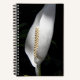Spiral bound notebook for home, school, or office that features the photo image of a white Peace Lily Plant bloom on the front cover. A lovely, floral design! Back cover is black. Perfect for use as a journal or for keeping notes! Select your notebook style options.