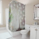 White Peacock and Green Peacock Feather art Print Shower Curtain