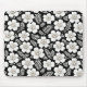 Large white flowers with pearl centers contrast beautifully against a black background, surrounded by intricate fern-like leaves
