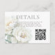 White Peonies Floral Wedding Details QR code Enclosure Card
