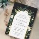 Our White Peony wedding invitation surrounds your wedding day details with a graceful arch of painted watercolor greenery, botanical foliage and white rose and peony flowers. Gold foil trim completes the design for a luxe finish.