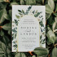 Our White Peony wedding invitation surrounds your wedding day details with a graceful arch of painted watercolor greenery, botanical foliage and white rose and peony flowers. Gold foil trim completes the design for a luxe finish.