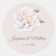 These wedding stickers feature a peony flower. You can personalise these stickers with your names and wedding date. Click on the "Customise" button for more options if you need to change the text size or would like to add any additional text. These stickers are ideal for use as envelope seal stickers or for decorating wedding favours. These stickers are part of a collection which includes matching wedding stationery and gifts. Please visit the collection page in our store to see the full range of wedding and bridal products that you can personalise for your wedding.