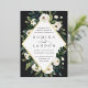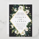Our White Peony wedding invitation surrounds your wedding day details with a modern geometric frame of painted watercolor greenery, botanical foliage and white rose and peony flowers. Gold foil trim completes the design for a luxe finish.