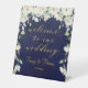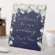 White Peony Gold Calligraphy Navy Welcome Wedding Pedestal Sign