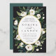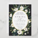 Our White Peony wedding invitation surrounds your wedding day details with a graceful oval frame of painted watercolor greenery, botanical foliage and white rose and peony flowers. Gold foil trim completes the look for a luxe finish.