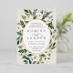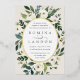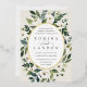 Our White Peony wedding invitation surrounds your wedding day details with a graceful oval frame of painted watercolor greenery, botanical foliage and white rose and peony flowers. Gold foil trim completes the look for a luxe finish.