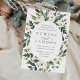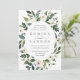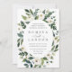 Our White Peony wedding invitation surrounds your wedding day details with a graceful oval frame of painted watercolor greenery, botanical foliage and white rose and peony flowers.