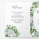 Beautiful white peony & rose floral wedding programs with abundant greenery. Perfect for a floral theme or traditional white wedding in the Spring or Summer. Customise the colour and text to make this wedding program your own!