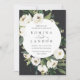 Our White Peony wedding invitation surrounds your wedding day details with a round frame of painted watercolor greenery, botanical foliage and white rose and peony flowers, set off-centre at the upper left for a fresh, modern look.