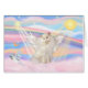 A ********* cat angel in a pastel coloured ribbon sky and pink fluffy clouds - a perfect Rainbow Bridge / memorial design.