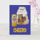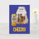 A white Persian cat is holding a beer stein and is standing by a can of White Persian Pale Ale.
