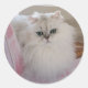 White Persian Cat on a Pink Chair Classic Round Sticker