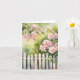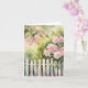 Lush, pink flowers hang over a white picket fence on this beautiful thank you card.
