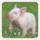 White Piglet Sniffs A Flower Square Sticker