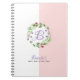 Modern watercolors delicate purple flowers and red berries circle wreath frame with customizable monogram.