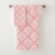 White & Pink Floral Damasks Pattern Bath Towel Set