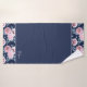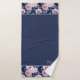 White, pink flowers on dark blue. Bath Towel Set