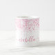 White pink glitter dust metal name script coffee mug