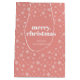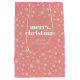 White Pink Merry Christmas Snowflake Pattern Medium Gift Bag