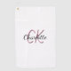 White pink monogram name script golf towel