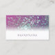 Make a lasting impression with this eye catching and stylish business card design featuring shimmery pink, purple and teal glitter with bright stars and on the reverse side there is a white background with a glitter border.