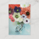 WHITE PINK RED ROSES AND ANEMONE FLOWERS MONOGRAM BUSINESS CARD