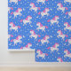 White Pink Unicorns Stars on Blue Wallpaper