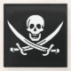 White, Pirate Flag Calico Jack, Skull & Cutlass Glass Coaster