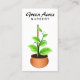 © Sunny Mars Designs. Growing Vine Terracotta Pots White Plant Nursery Business Cards - This nursery business card template features a vine growing against a brown bamboo stick in a terracotta pot against a white background. The back of the card features the same plant growing on a bamboo stick.
