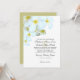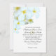 White plumeria wedding invitations with big flowers in the upper corner. Customise the black text which is slightly off-centre, line by line. Full names of the bride and groom are connected by an "and" sign (ampersand). White flowers have golden yellow centres. Reverse is solid yellow-green colour.