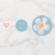 Wedding White Frangipani Plumeria Flowers on light wondrous blue Table Confetti. Text can be personalised for wedding, anniversary,and Birthdays. Frangipani flowers stand for beauty and perfect love.
