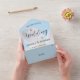 A soft and delicate floral design with a white Hawaiian Plumeria flower on a soft blue background. A perfect invitation package set for the beach wedding, Hawaiian wedding, tropical island destination wedding and more. The Hawaiian meaning for the Plumeria flower is "new beginnings" and "positivity". Both perfect for the new beginnings of a married relationship.