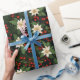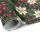 White Poinsettia and Red Holly Berries Wrapping Paper