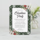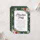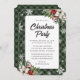 Elegant green buffalo plaid Christmas party invitation featuring snowflakes and winter botanicals.