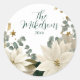 White Poinsettia Holiday Party Classic Round Sticker