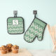 Add a touch of elegance to your holiday kitchen with this beautiful oven mitt and pot holder set featuring a white poinsettia flower pattern with green accents on a serene green background. Perfect for bringing festive charm to your culinary space, this set is both stylish and functional. Customise it with your monogram for a unique addition to your kitchen decor or as a thoughtful Christmas gift. This set provides essential protection while cooking and baking, making it a delightful and practical addition to your seasonal kitchen accessories.